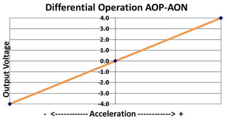 該型號能夠產生一個隨加速度變化而改變的差分±4伏輸出電壓。特別地,地震中心被精確安置在雙感測元件的中心線上,這樣圍繞這個點產生的任何旋轉誤差都能被內部電子電路有效地補償。