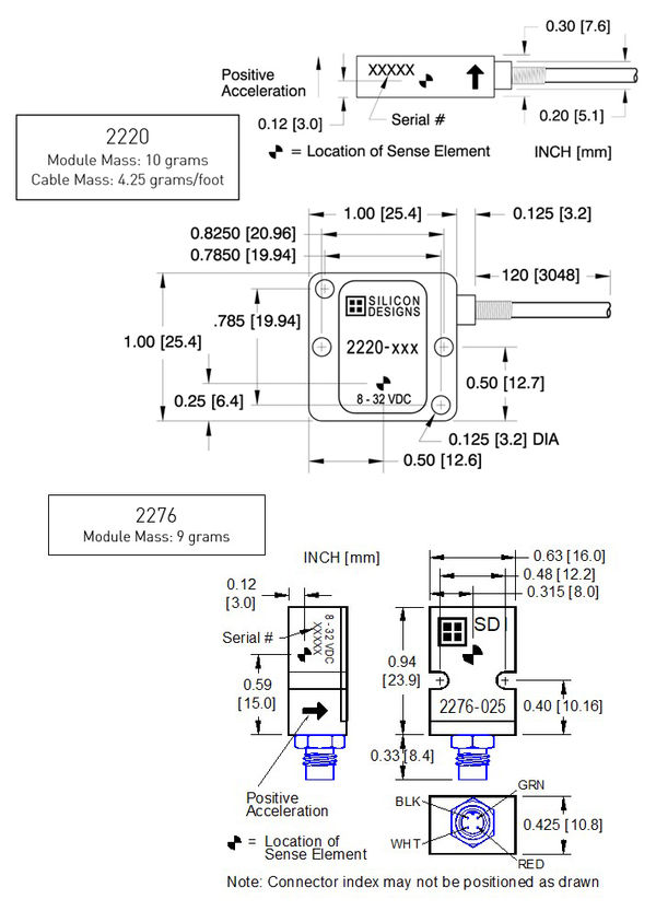 這兩款加速度計均采用密封結構的低噪聲SDI1522型表面安裝傳感器,在出廠前經過單獨的測試、編程、校準及驗證過程,確保其在熱波動條件下的準確性。它們都提供了初始校準報告。內置的電壓調節器和內部參考電壓使得用戶無需提供精密電源。產品外殼由堅固的陽極氧化鋁制成,并進行了環氧樹脂密封處理,支持通過螺絲固定、粘合劑粘接或磁鐵連接等方式進行簡便安裝。