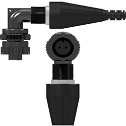 2 插座 MIL 型直角聚碳酸酯模制連接器,長時間安裝,250 °F (121 °C) 最高溫度