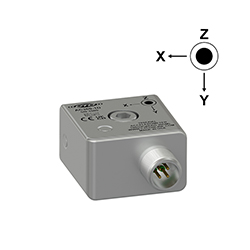 微型工業三軸加速度計,側出4針微型連接器,遵循笛卡爾相位坐標系,100mV/G,±5%