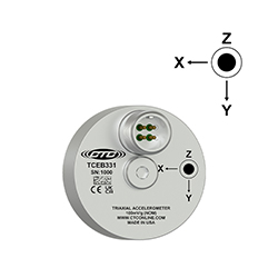 微型工業圓三軸加速度計,頂部出口4針微型連接器,100 MV/G,±5%