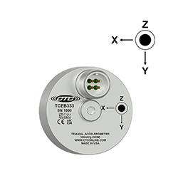 低成本三軸加速度計,頂部出口4引腳微型連接器,遵循笛卡爾相位坐標系,用于模態和ODS分析,100mV/G,±15%
