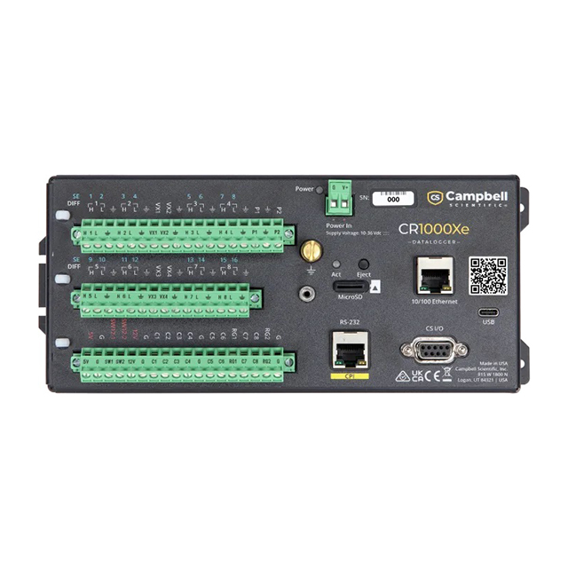 CR1000Xe 是一款低功耗設備,可測量模擬和數字傳感器,處理和存儲測量結果,并適應任何通信鏈路。它將數據和程序存儲在非易失性閃存中。所有 Campbell Scientific 數據記錄儀通用的板載編程語言允許用戶創建完全適合應用的解決方案。