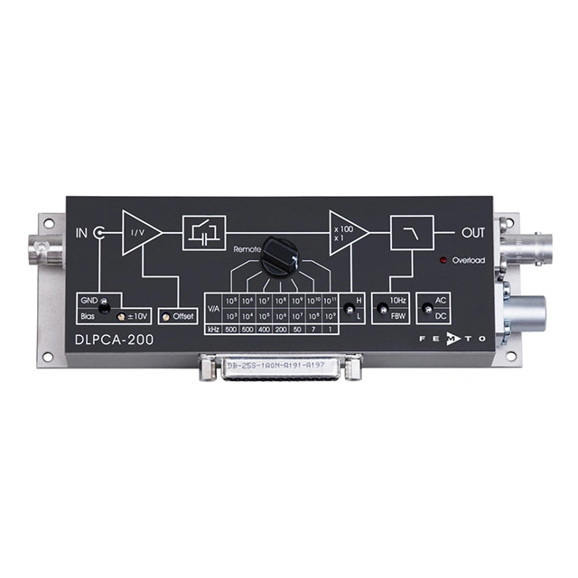 DLPCA-200 提供您期望從通用電流放大器獲得的所有功能:從 10 3到10 11 V/A 的可調(diào)增益、可調(diào)偏置和偏移電壓、用于低噪聲直流的可切換 10 Hz 低通濾波器測(cè)量和可切換的交流/直流耦合。所有基本設(shè)置都可以直接在設(shè)備上控制,也可以通過(guò)數(shù)字接口遠(yuǎn)程控制,例如使用 PC。所有這些都安裝在堅(jiān)固、緊湊且符合 EMC 標(biāo)準(zhǔn)的外殼中,允許在靠近源的地方放大信號(hào)。