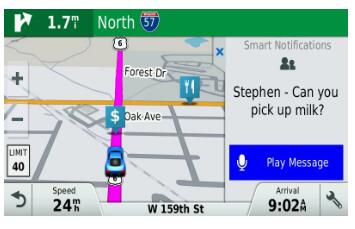 當您將此導航器與兼容的 Garmin 智能手表(單獨出售)配對時,即使您已經停好車并朝著目的地走去,您也可以直接在手腕上接收導航。還可以在手表上獲取有用的駕駛員警報。不要擔心在擁擠的停車場丟失您的汽車;您的智能手表提供指南針指導,從您停放的車輛到目的地,然后再次返回您的車輛。