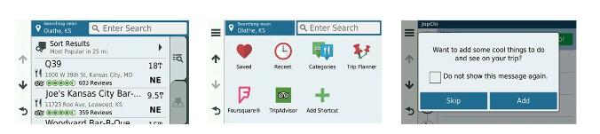 當您不熟悉該地區時,很高興有一些東西可以為您指明正確的方向。這就是我們將 TripAdvisor 引入您的 Garmin DriveTrack 導航器的原因。 查看沿途或目的地附近的旅游景點(如酒店、餐廳和景點)的評級。我們幫助您找到使整個旅程成為目的地一部分的站點。 還可以使用內置的旅行計劃工具定位新景點,該工具通過建議沿途有趣的站點來增加公路旅行的樂趣。