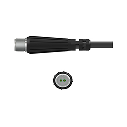 2 針 Mini-MIL 連接器,帶橡膠彎曲應變消除裝置,聚氨酯模制,最高溫度 250 °F (121 °C)