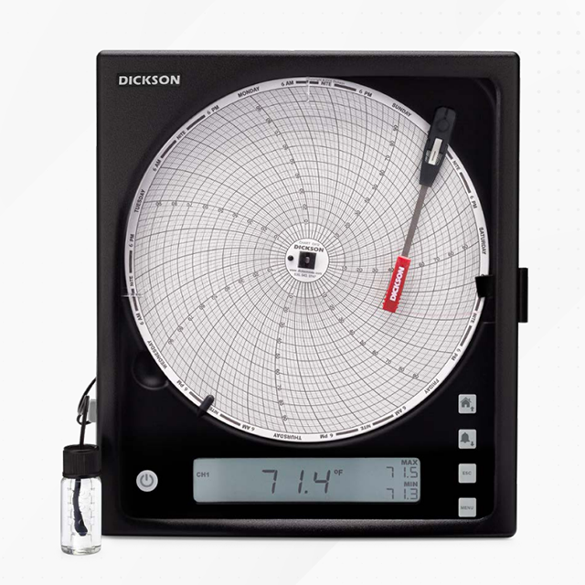 美國(guó)DICKSON KT8-20 8英寸(203 毫米)圖表記錄儀提供所有圖表記錄儀中較大的分辨率。現(xiàn)在具有可更換傳感器,校準(zhǔn)您的圖表記錄儀比以往任何時(shí)候都更容易。所有圖表記錄儀均配有 8 英寸大圖表和用戶可選擇的記錄時(shí)間范圍(1 天、1 周)和范圍。