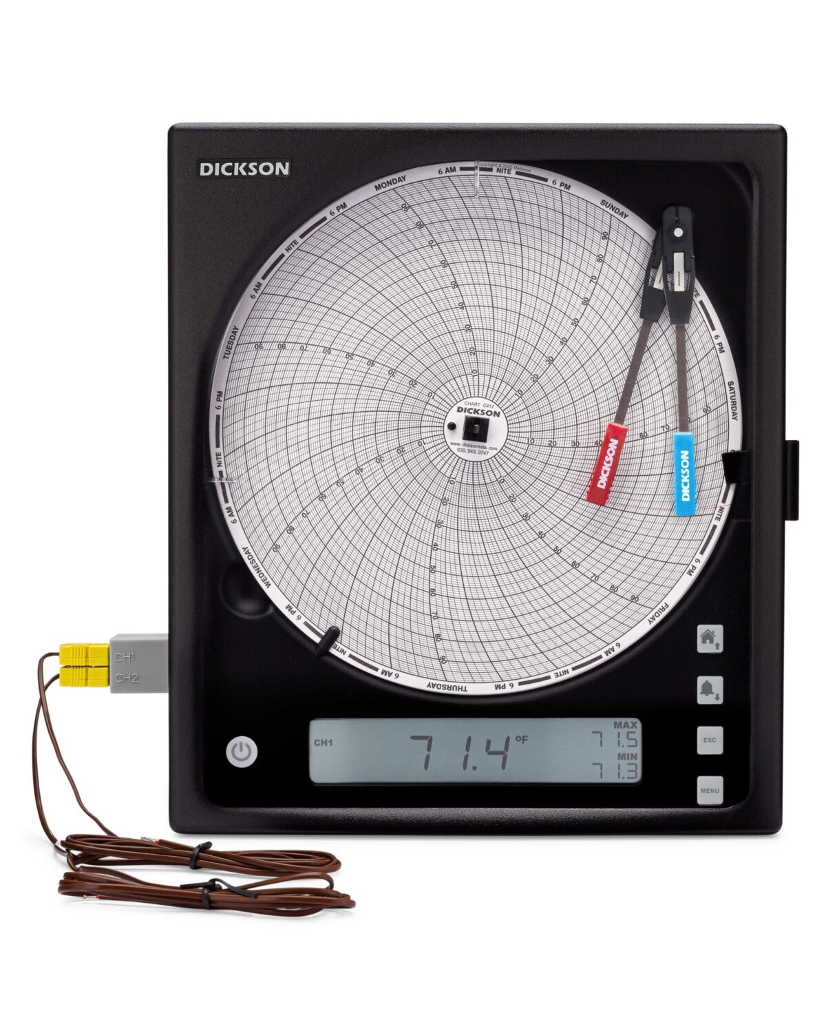 美國DICKSON KT8-31R 8英寸(203 毫米)圖表記錄儀采用8"記錄紙,用戶可自行切換記錄周期和溫度范圍,配有可更換溫度傳感器,使校準更方便,LCD顯示當前溫度和最高最低值,可進行聲光chao限報警,適合多種場合的溫度記錄使用。