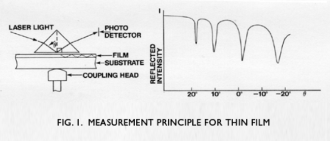 粗略地估計,第一種模式 (dip) 的角度位置決定了薄膜指數,而兩種模式之間的角度差決定了厚度,從而可以完全獨立地測量厚度和指數。