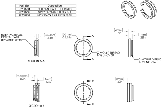 用于相機(jī)的 4 毫米間距螺旋濾光片,透射率在 20% 到 5% 之間,具體取決于光譜范圍 可以堆疊并與其他濾光片和分束器結(jié)合使用。Ophir 相機(jī)附帶一個(gè)濾光片