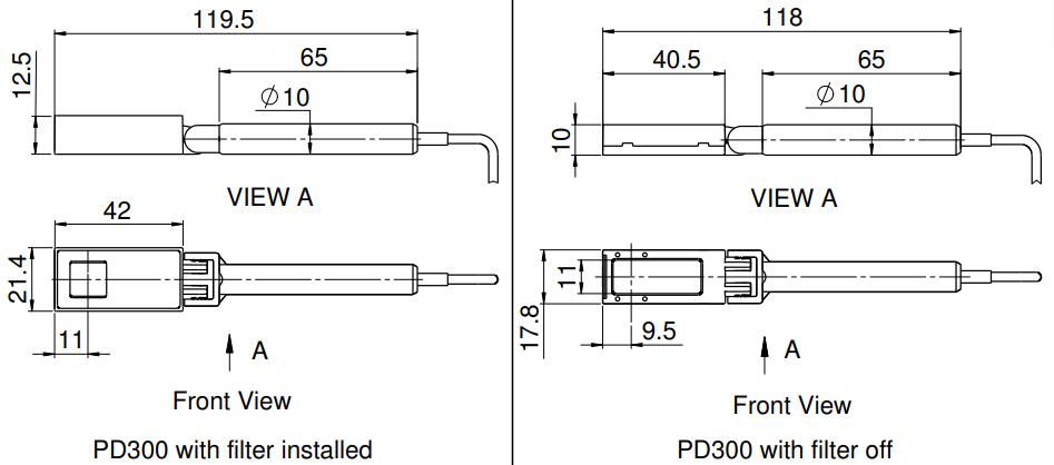 PD300 是一款通用光電二極管激光測量傳感器,具有旋轉(zhuǎn)安裝和可拆卸濾光片,孔徑為 10x10mm。不帶濾光片時,其光譜范圍為350-1100nm,功率測量范圍為500pW-30mW。帶濾光片的光譜范圍為 430nm - 1100nm,功率范圍為 2μW - 300mW。它具有 Ophir 獨有的自動背景扣除功能。該傳感器帶有一根 1.5 米長的電纜,用于連接到儀表或 PC 接口。