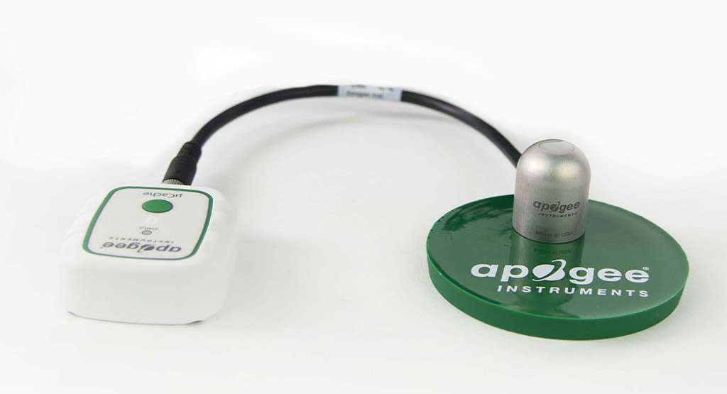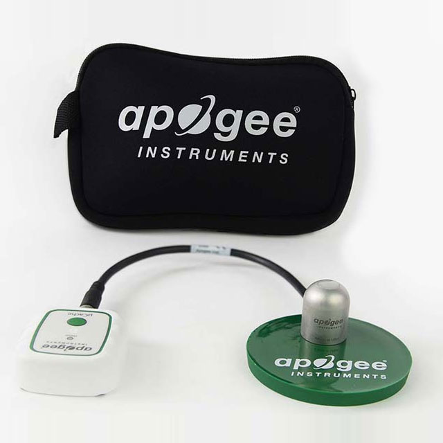 PP-500 封裝包括一個帶 30 厘米電纜的SP-510-SS 上視熱電堆日射強度計傳感器頭、一個microCache 藍牙微型記錄器、一個AA-090 氯丁橡膠保護套、一個額外的2545 microCache 電池和一個AM-020 Apogee PVC傳感器平臺。配對后,這兩個設備是監(jiān)測光合有效輻射 (PAR) 的強大工具,具有非常高的精度,可實現(xiàn)良好植物生長。