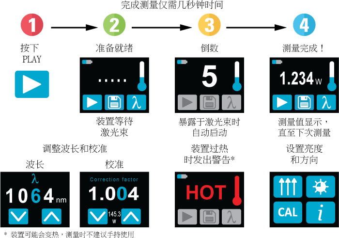 由于噪聲級別低、損壞閾值高,PRONTO 的功率可測量范圍為 1 瓦至 50 瓦
