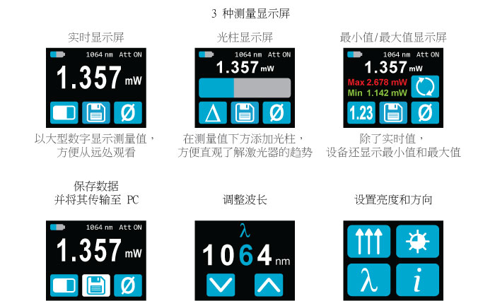 可以根據(jù)自己的應(yīng)用設(shè)置波長(zhǎng)、亮度和屏幕方向