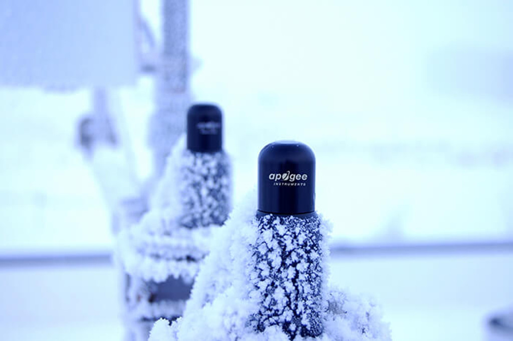 猶他州洛根 1 月霜凍后的太陽輻射,直到上午 11 點都是陰天 兩個復制的 Apogee SP-230 日射強度計與加熱和通風的參考日射強度計幾乎相同。盡管上午 11 點后陽光明媚,但兩個未加熱的玻璃圓頂熱電堆和四個復制的未加熱城堡設計日射強度計上的霜直到下午 4 點(1600 小時)后才融化。