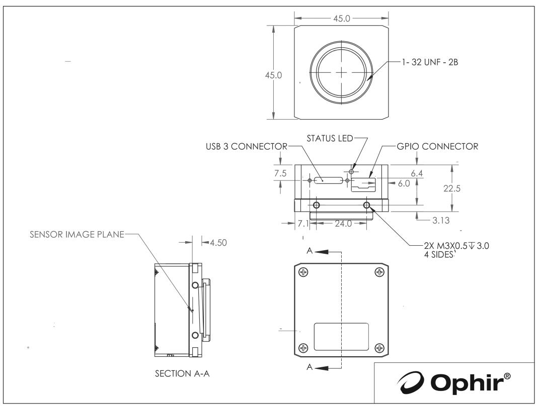 USB 3.0全局快門CMOS,高分辨率相機,具有更高的精度,尤其是在近紅外和Nd:YAG波長下,使用BeamGage的“Blooming Correction”算法。緊湊的方形設計增加了設置的多功能性。