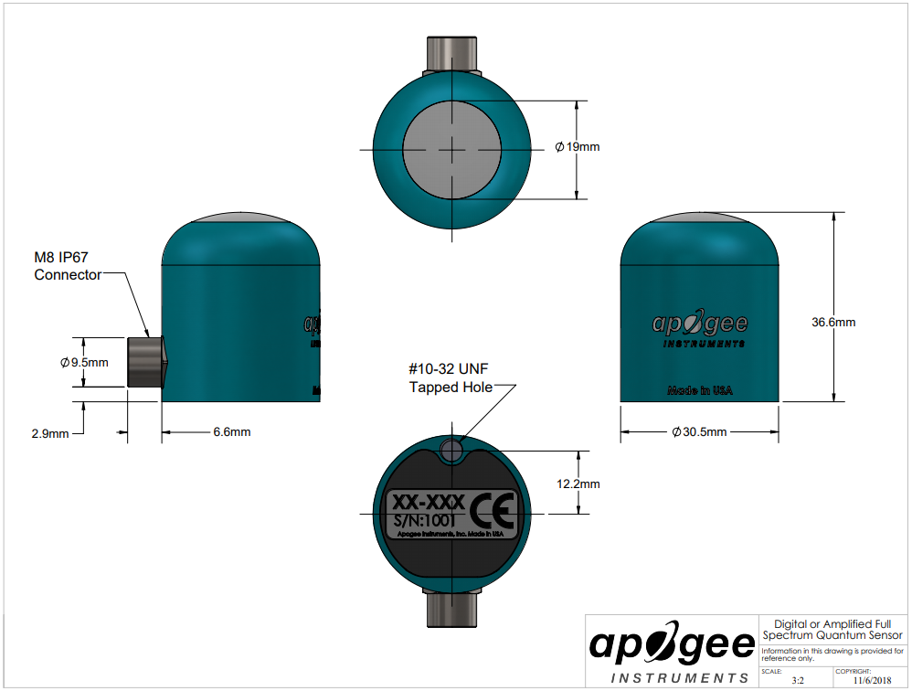 SQ-522 傳感器通過RS-232或RS-485使用Modbus RTU協議輸出數字信號。該傳感器采用堅固耐用的自清潔傳感器外殼設計,陽極氧化鋁機身,帶有丙烯酸擴散器,高質量的電纜終端采用預鍍錫的pigtail引線,方便連接到數據記錄儀和控制器。典型應用包括室外環境、溫室和生長室中植物冠層上的PPFD測量,以及相同環境中反射或冠層下(傳輸)PPFD測量。量子傳感器也被用于測量水生環境中的PAR/PPFD,包括生長珊瑚的鹽水水族館。