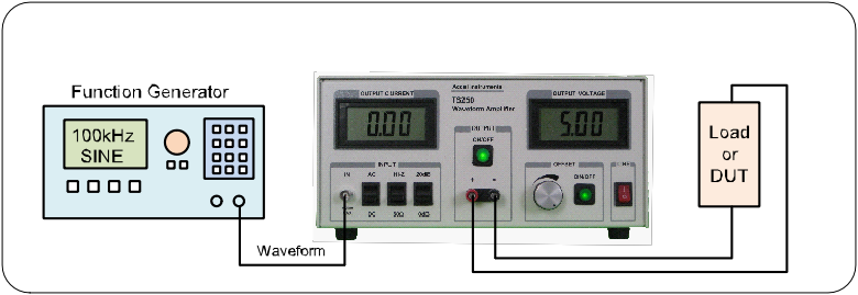 TS250波形放大器是一款獨特的儀器,非常適合放大函數(shù)發(fā)生器。它放大電流或電壓或功率以驅(qū)動重負載。TS250 提供 ±10V 至 +65V 八種電壓范圍可供選擇。TS250 低壓型號的輸出電流高達 5A 。如應(yīng)用部分所示,通過并聯(lián)連接兩個或多個 TS250 波形放大器可以實現(xiàn)更高的電流。