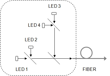 將 2、4、6 或 8 個 LED 組合成單個光纖輸出