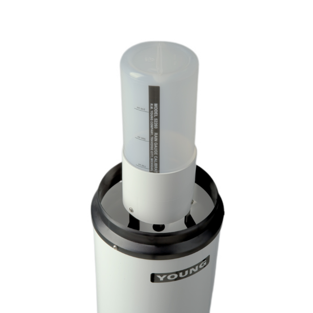 The YOUNG Model 52260 Rain Gauge Calibrator offers a simple and convenient way to determine rain gauge accuracy. The constant head adapter attached to the 1000 ml water container regulates the flow of water through one of three flow (rate) nozzles. A stand for use with YOUNG Models 52202 and 52203 Tipping Bucket Rain Gauge is included (may also be used with other sensors).
