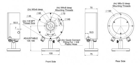 The BD10K-W is a water cooled beam dump for up to 11kW with a 45mm aperture. It has a deflecting cone and annular absorber that withstands high power densities to 10kW/cm2. It can be used over the spectral range from 0.8 to 20μm.