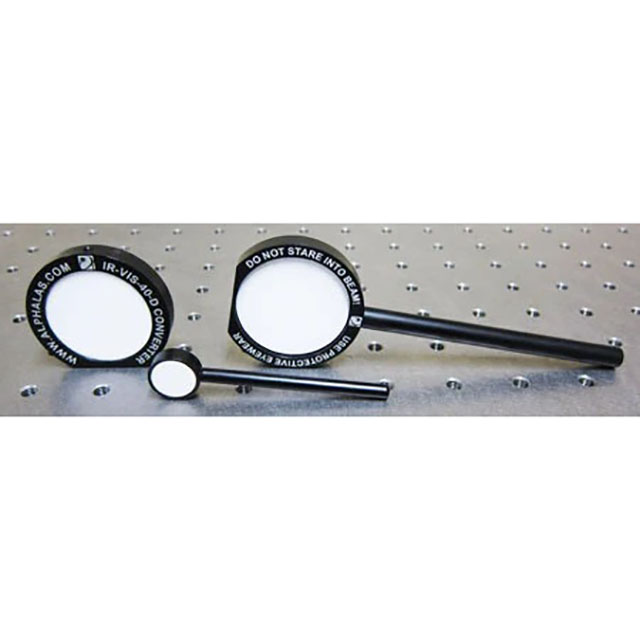 The IR-VIS series from ALPHALAS are unique infrared-to-visible converters suitable for CW and pulsed IR laser sources as well as IR laser diodes. They are ideally suited for tasks like detecting invisible IR radiation, identifying mode structure, etc. Therefore, the visualizers are indispensable tools for every laboratory using Nd:YAG or other IR lasers.
