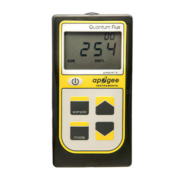 Three measurement modes: the instrument has point measurement, sampling and logging modes, and records inmol m ˉ2 s ˉ1is the unit of comprehensive daily total. The sampling mode will record up to 99 manual measurements, and the logging mode will turn the instrument on and off, making measurements every 30 seconds. Every 30 minutes, the instrument will take an average of 60 30 second measurements and record the average value in the memory, up to 99 average values. Once filled, it will overwrite the old measurement with the new one. The daily light integration will be recorded from 48 average measurements to obtain a daily reading, which can be downloaded via the Apogee AC-100 cable and used with the accompanying Apogee AMS software.