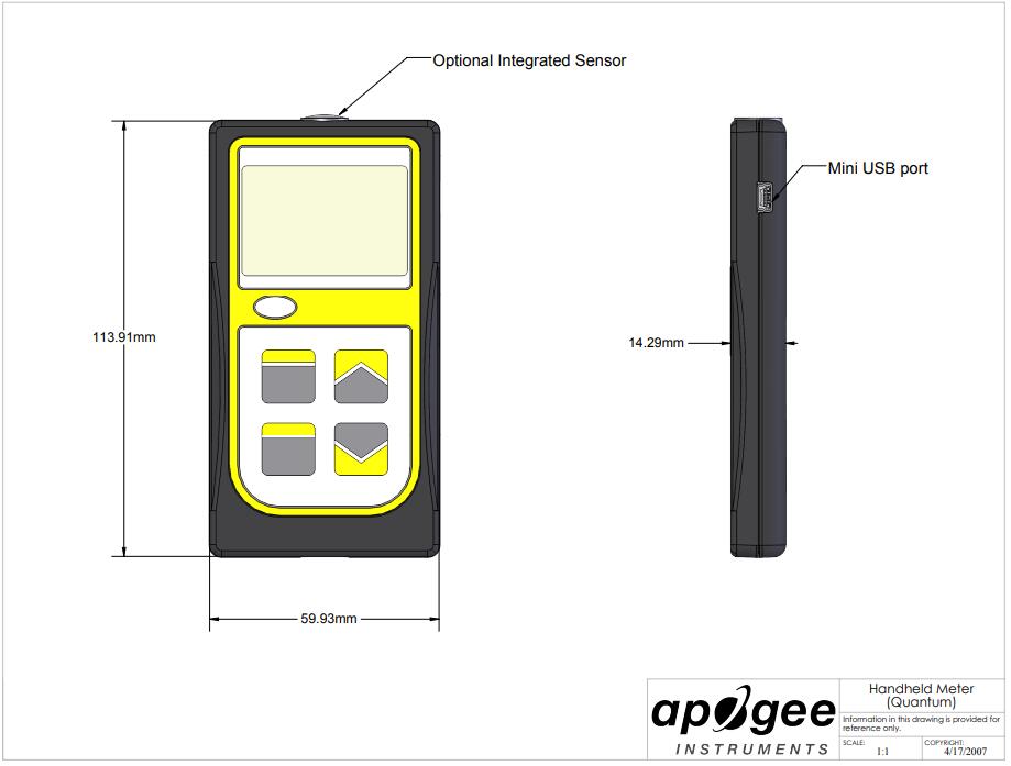 Accurate and stable calibration: the instrument combines the intensity of all photons between 400 and 700 nm under sunlight, metal halide and high-pressure sodium lamp to give a value ofμ mol m within 5% uncertainty ˉ2 s ˉ1is a single PAR reading in units. Unlike amateur PAR instruments that are sometimes used out of the box but quickly lose calibration, Apogee instruments have accurate and stable calibration, with an annual drift rate of less than 2%.