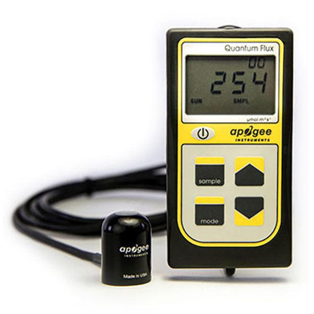 Rugged and easy to use - Quantum sensor heads are made of machined aluminum and encapsulated in epoxy resin, which can be used for many years in harsh environments, including underwater. The hand-held instrument is connected by cable and can display real-time readings, record samples, and record average intensity and daylight integration (DLI) measurements. Unlike the sensor head, the hand-held instrument is not waterproof.