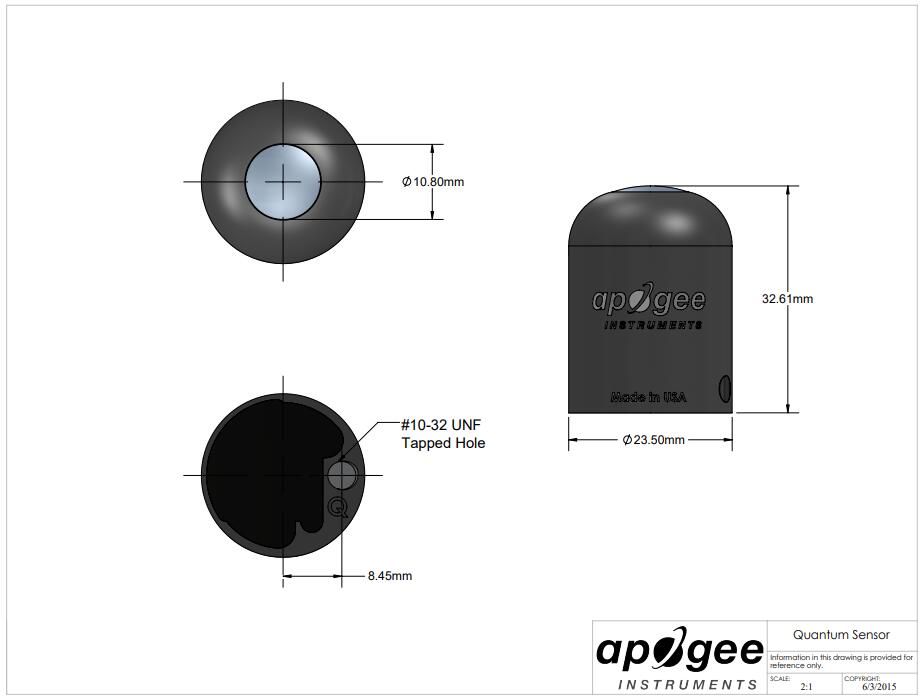 MQ-200X sensor adopts Apogee's older and more economical photoelectric detector, which is very suitable for accurately measuring PAR, metal halide and high-pressure sodium lamp in sunlight. To measure other light sources, including LEDs, an updated full spectrum or ePAR sensor is recommended.