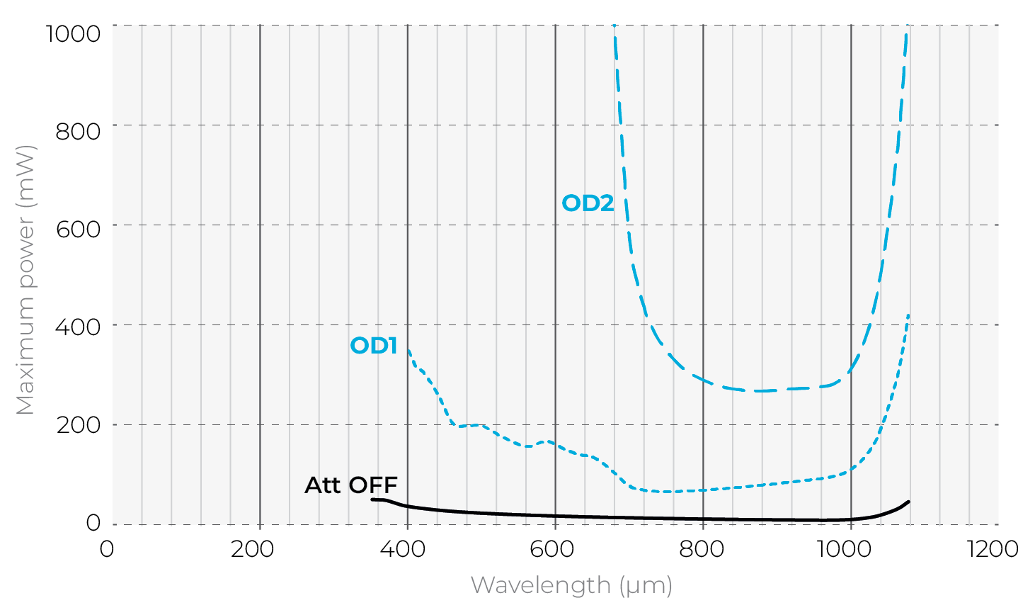 1. At 1064 nm, with attenuator. See curves for maximum power at other wavelengths. 2. At 980 nm. Nominal value. Actual value depends on environmental electromagnetic interference and wavelength. 3. With attenuator. See user manual for calibration uncertainty without attenuator. 4. See user manual for details. |