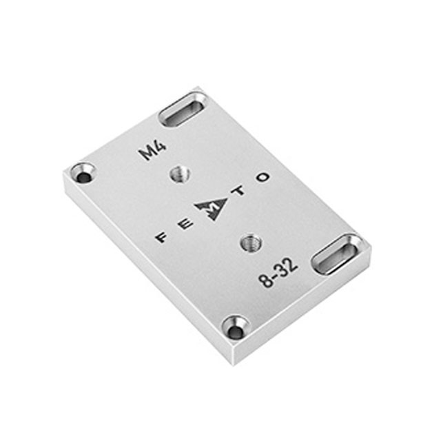 Due to the integrated M4 and 8-32 UNC tapped holes, standard posts for breadboard systems can be easily mounted to the photoreceiver via the adapter plate. The high-tensile material as well as the high manufacturing quality of the adapter plate guarantee a solid fixation.