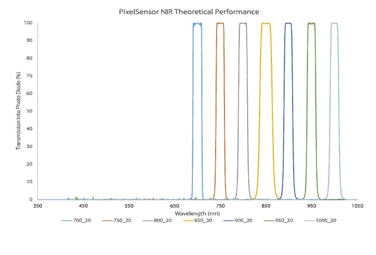 Torrent Photonics offers four variations of PixelSensor Multispectral Sensors — VIS, VIS-NIR, NIR, and PCR.