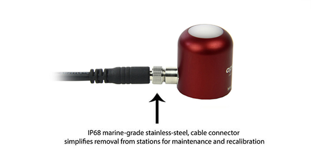 The S2-431 Red - Far-red sensor is a two-channel digital sensor with SDI-12 communication protocol. The sensor features a rugged, aluminum housing that is fully-submersible and built to withstand harsh conditions, and high-quality cable terminating in pre-tinned pigtail leads for easy connection to dataloggers and controllers. The sensor cable includes an IP68 marine-grade stainless-steel cable connector to simplify sensor removal and replacement from permanent installations for maintenance and calibration. Typical applications include measuring the Red / Far-red ratio (RFR) for ecological applications, including the effect of spectral quality on phytochrome. The RF ratio influences plant height, leaf expansion rates, and other photobiology and plant morphogenic responses.