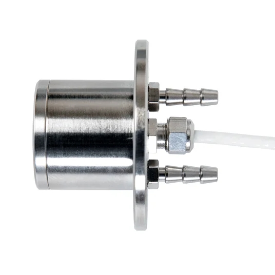 SBG01 measures heat flux in the range of (5 to 200) x 103 W/m2. Equipped with a black absorber, heat flux sensors of this type are designed for measurement in an environment in which heat flux is dominated by radiation. Using an open detector, SBG01 is also sensitive to convective heat flux. This contribution is usually ignored. Application in environments with lower than 50 x 103 W/m2 irradiance levels or environments with significant heat transport by convection is possible but requires a careful evaluation of the measurement uncertainty. SBG01’s thermopile sensor generates an output voltage proportional to the incoming irradiance. The sensor is water-cooled. There are 6 models of SBG01; each with a different rated measurement range, calibration reference irradiance level, sensitivity and response time. Water cooling is usually supplied by tap water. There are several optional body designs. The standard body is equipped with a flange. Common options are a smooth cylinder body without a flange (model -C) and threaded body (model –T). Also a thermocouple (type T or K) can be fitted upon request.