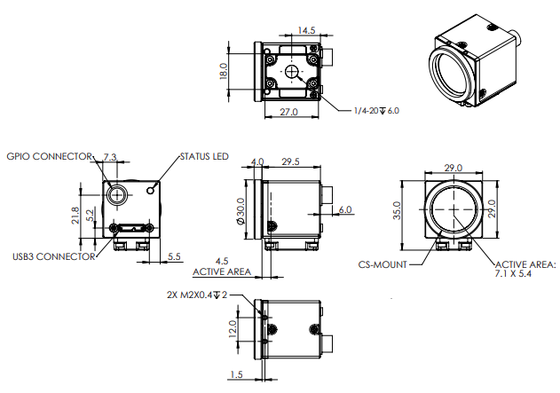 5.3mm x 7.1mm active area with an effective 60μm pixel pitch