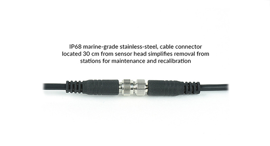 The SQ-500 is a self-powered, analog full-spectrum quantum sensor with a 0 to 40 mV output. The sensor incorporates an enhanced silicon photodiode and custom optical filters with a rugged, self-cleaning sensor housing design, anodized aluminum body with acrylic diffuser, and an inline cable connector placed 30 cm from the sensor head for either standard use as a long-cable pigtail sensor, or for use with our microCache Bluetooth Micro Logger by unscrewing the connector, discarding the long section of cable and then screwing the sensor to the mating connector on the microCache. Typical applications include PPFD measurement over plant canopies in outdoor environments, greenhouses, and growth chambers, and reflected or under-canopy (transmitted) PPFD measurements in the same environments. Quantum sensors are also used to measure PAR/PPFD in aquatic environments, including salt water aquariums where corals are grown. Sensor includes IP68 marine-grade stainless-steel cable connector 30 cm from head to simplify sensor removal and replacement for maintenance and recalibration.