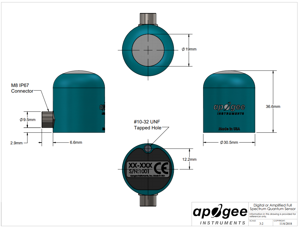 | Non-linearity | Less than 1% (up to 4000 μmol mˉ2 sˉ 1) |