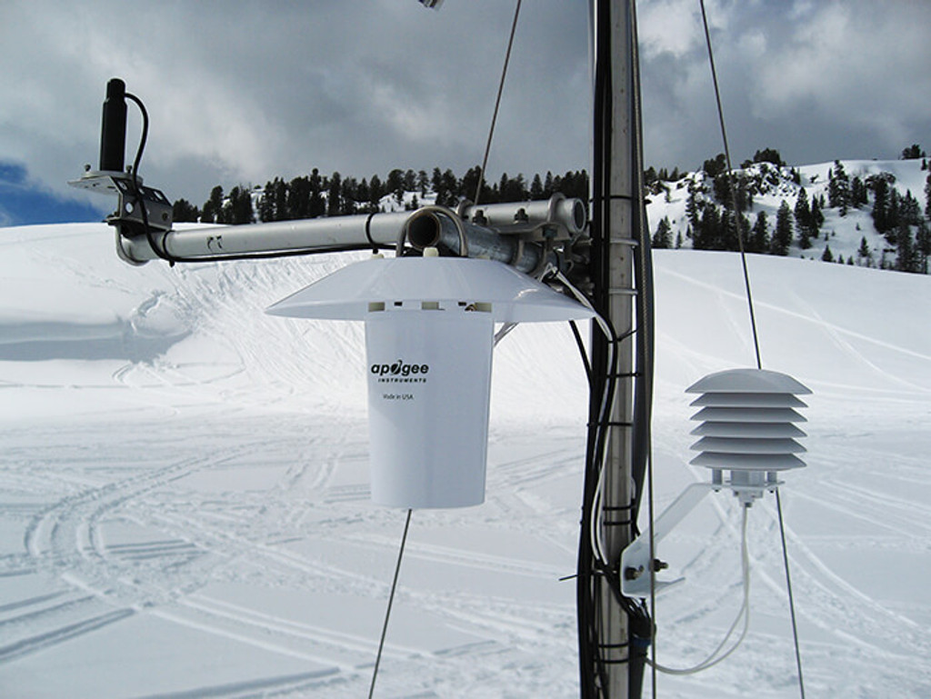 The TS-100 is the only shielding model for the apogee 12 volt fan suction radiation shield. Its unique aerodynamic shape and rugged low power consumption fan make it a research grade fan suction shield that can be used in batteries or solar power plants. The shield provides excellent sensor protection and uses a sensor port adapter plug to accommodate various combinations of thermistors, PRTs, and humidity probes. Typical applications include air temperature and humidity measurements in weather networks, usually for weather forecasting, and solar energy sites. Fan suction shields are also important in accurately measuring air temperature and humidity gradients above the surface and in monitoring climate change.