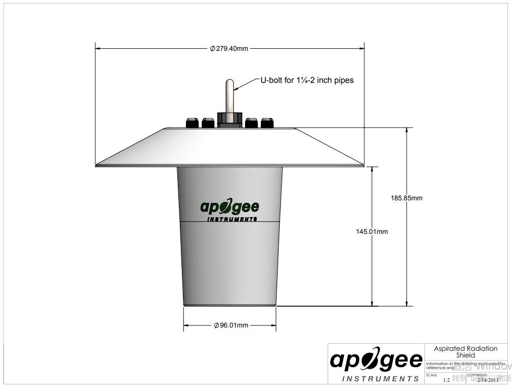 The TS-220 model includes the TS-200 fan-aspirated radiation shield and an EE08-SS relative humidity probe at a special price. The unique aerodynamic shape and rugged, low-power fan make it the first research-grade fan-aspirated shield that is practical for use on batter or solar powered stations. The shield provides excellent sensor protection and accommodates various combinations of thermistors, PRTs, and humidity probes using one of the sensor port adapter plugs. Click here for a list of compatible sensors. If you use a different sensor, please contact us directly to discuss compatibility. Typical applications include air temperature and humidity measurement in weather networks, often for weather forecasting, and solar energy sites. Fan-aspirated shields are also important in the precise measurement of air temperature ad humidity gradients above the land surface and in climate change monitoring.