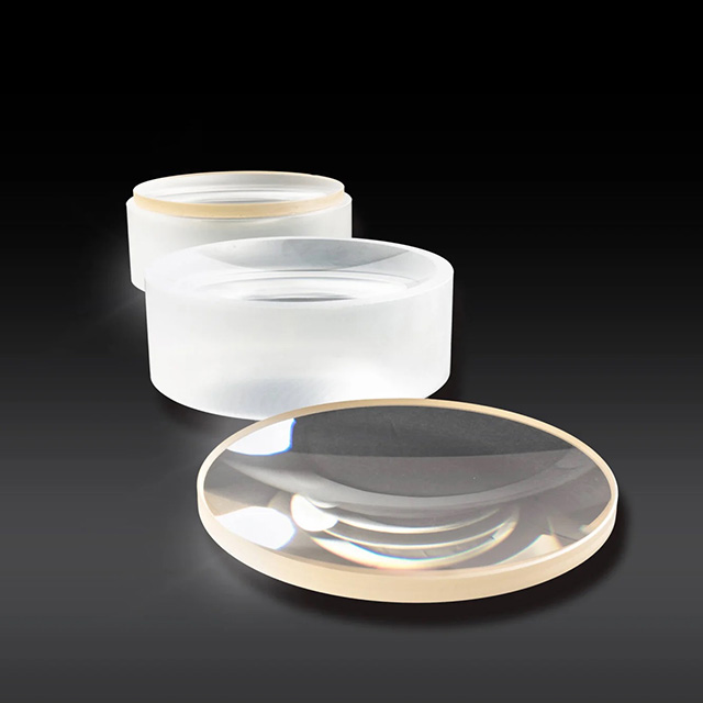 A molded polymer aspheric surface is fused to the doublet’s second surface. These molds produce a stable aspheric shape by removing or minimizing the wavefront errors prevalent in ordinary achromats and increasing the numerical aperture. Fiber optic focusing or collimation, image relay, inspection, scanning, and high numerical aperture imaging are typical applications.