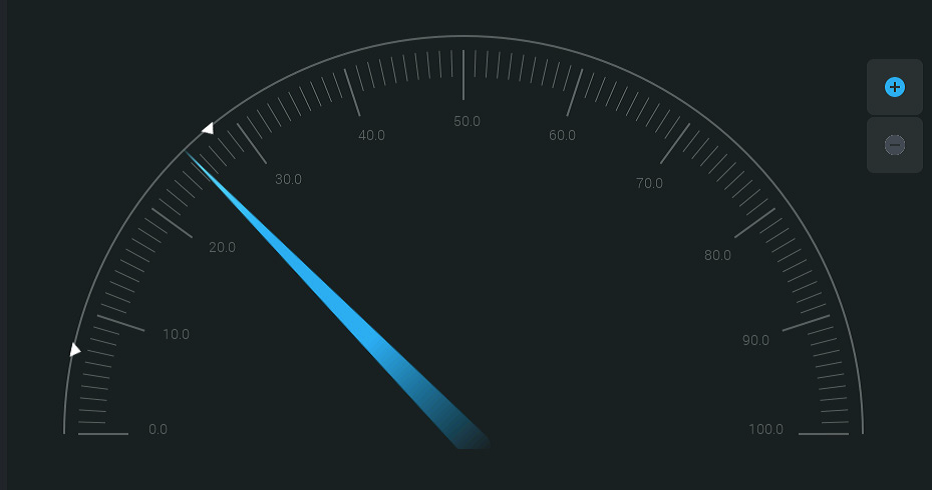 Arrows indicate the minimum and maximum measured values since the last reset. The zoom function sets these values as full scale of the digital gauge.